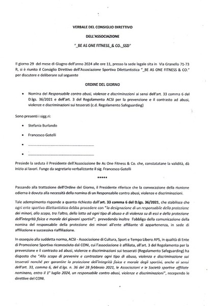 VERBALE CONSIGLIO DIRETTIVO MOG E CODICE DI CONDOTTA