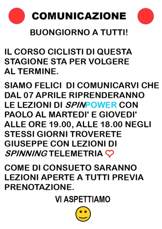 Sab : CORSI dalle 11.00 alle 12.00